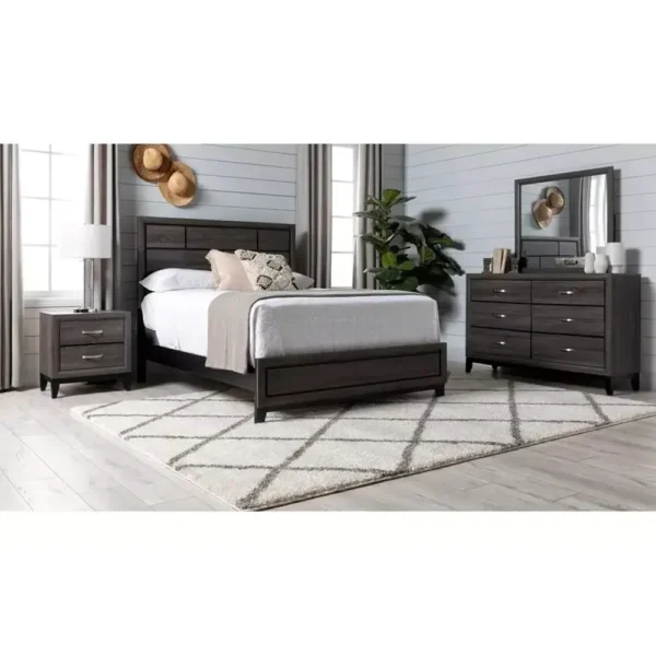 This Classic Polish bed in espresso oak offers a grounded, sophisticated look. The subtle paneling on the headboard provides a textured feel while maintaining a clean, masculine aesthetic.