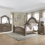 The Executive Dark Brown Leatherette Bed with Paneled Headboard is designed to bring a touch of class to any home. Combining utility with luxury, this bedroom set features a rich dark brown finish. The headboard is accented with black leatherette vertical panels for a sophisticated look. Hidden storage drawers in the bed frame provide extra space for linens, while the coordited 9-drawer dresser and nightstands offer a complete storage solution. Built with quality materials to ensure lasting durability and style.
