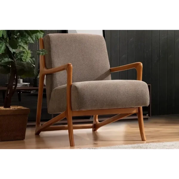 Heritage Haven Tufted Beige Sofa with Walnut Trim