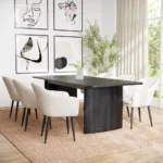 Obsidian Modern Black Table with Teal Velvet Chairs