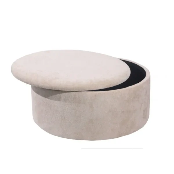 Hidden Storage Compartment Circular Beige Velvet Pouffe