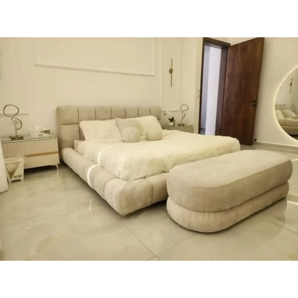 Ivory Bliss Deep-Channel Tufted Modern Fabric Bed