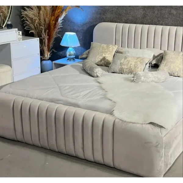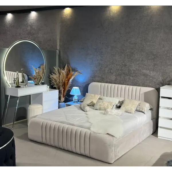 Luxury Turkish Grey & White Fabric Bed with Deco Gold Accents