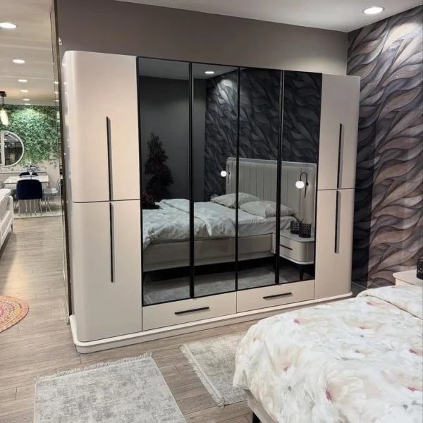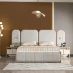 Sleep in style with this sophisticated deco bed. The high, fluted headboard features built-in globe lighting and a soft cream velvet finish that creates a serene and high-end sleeping environment.