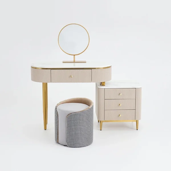 Luxury White & Gold Turkish Dressing Table with Fluted Detailing & Circular Mirror