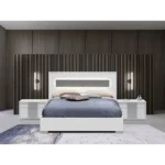 This high-fashion bed combines the look of white marble with the comfort of channel-tufted leatherette. Built-in blue LED lighting creates a cool, atmospheric glow perfect for modern homes.