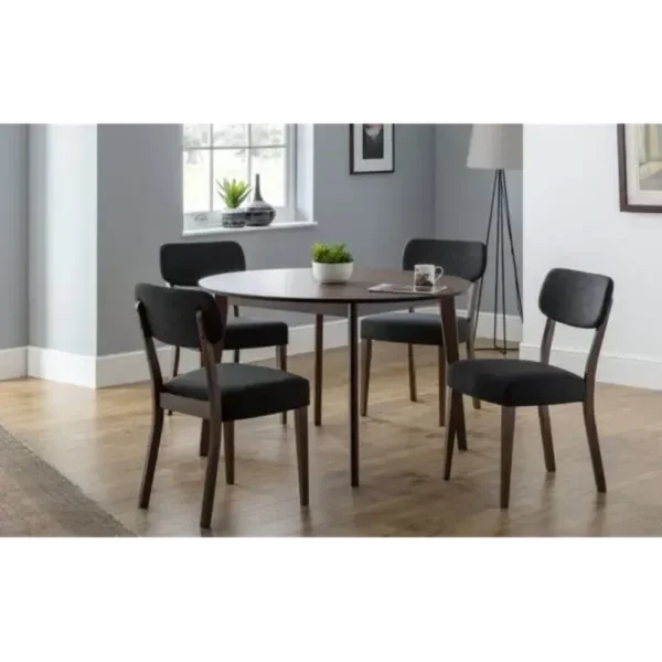 Mid-Century Espresso Round Dining Set with Black Velvet