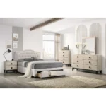 Modern Deco White & Light Brown Storage Bed with Integrated Drawers