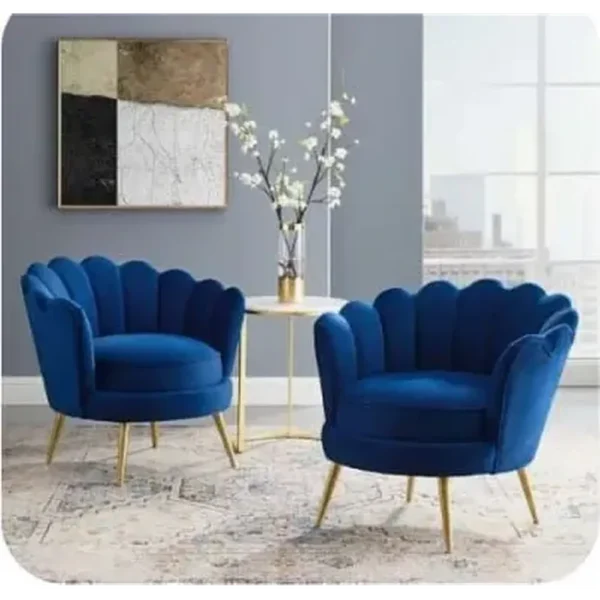 Transform your interior with the uniquely crafted Gold Tapered Legs – Set of 2 Trendy Royal Blue Velvet Scalloped Accent Chairs. Add a touch of Art Deco glamour to your bedroom or lounge with these stunning scalloped accent chairs. The vibrant blue velvet is soft to the touch, while the gold-toned legs provide a sturdy, modern base. These chairs serve as a bold statement piece for any contemporary space. Ideal for those who appreciate fine craftsmanship and contemporary design.