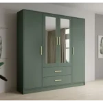 This luxury cupboard features a soothing grey finish and a creative geometric mirror layout on the front. Its sliding doors provide easy access to a vast interior, making it an ideal choice for modern, clutter-free living.