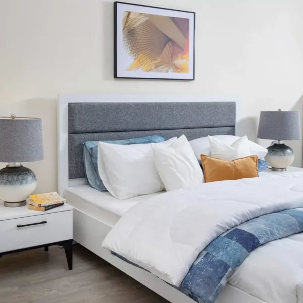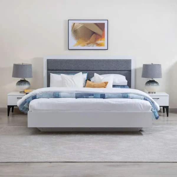Nordic Grey & White Padded Modern Deco Bed – Minimalist Style