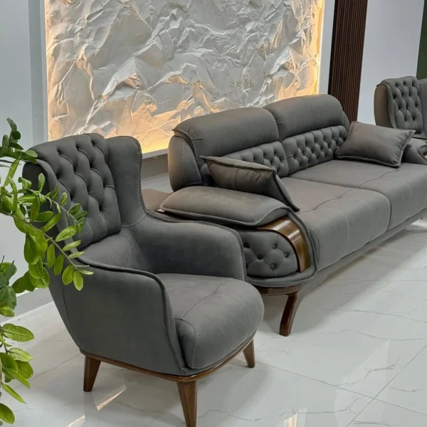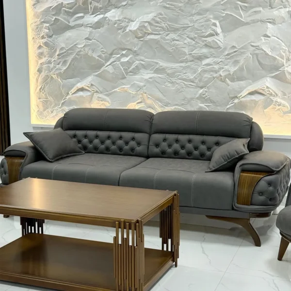 Obsidian Crest Tufted Turkish Black Sofa