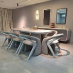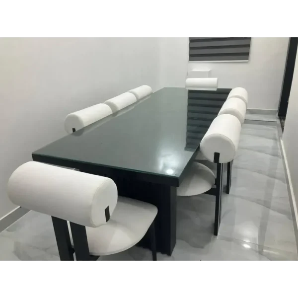 This architectural masterpiece uses a low-profile silhouette to create a sense of space. The deep black velvet is framed by high-gloss white polished wood, offering a museum-quality look that doesn’t compromise on everyday comfort.