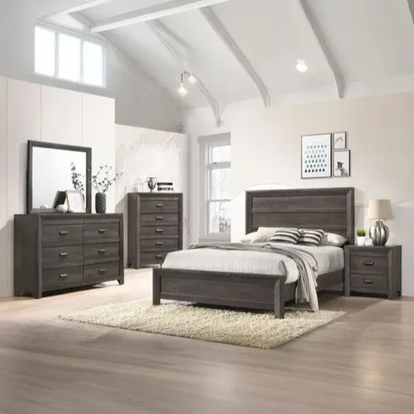 Experience a new level of comfort and style with our Paneled Headboard Classic Dark Brown Polish Wood Integrated Bedroom Set. The set includes a sturdy bed frame with a prominent paneled headboard, a spacious six-drawer dresser with a mirror, and a matching tall chest. Ideal for those seeking a warm, traditiol atmosphere.. A comprehensive bedroom suite crafted with a deep dark brown finish Ideal for those who appreciate fine craftsmanship and contemporary design.
