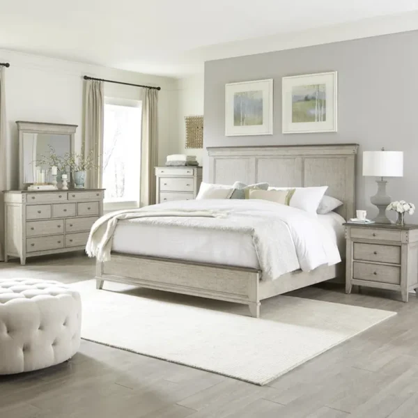 Elevate your living space with the Refined Solid Wood Polish Bedroom Suite in Medium Brown. A comprehensive bedroom solution, this classic polish set includes a sturdy bed, a functiol multi-drawer dresser, and matching nightstands. The medium brown polish highlights the tural beauty of the wood grain, creating a warm and welcoming traditiol bedroom environment. Built with quality materials to ensure lasting durability and style.