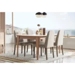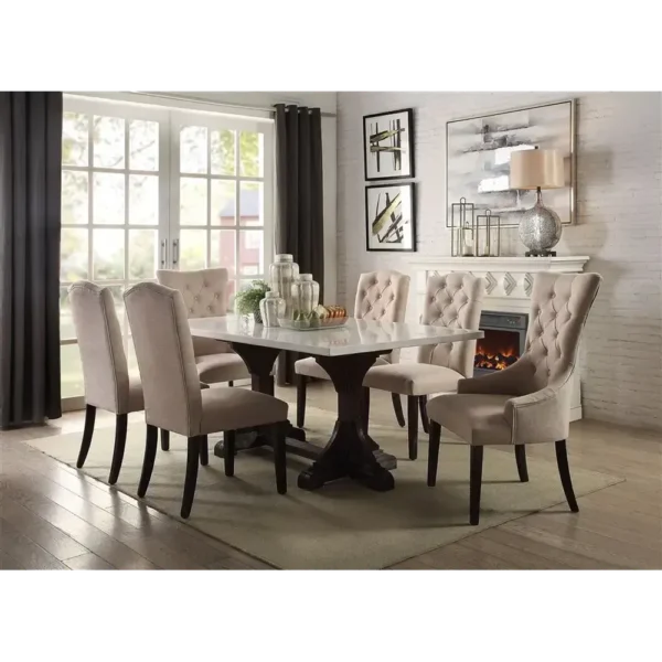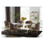 Luxury Turkish Beige & Gold Dining Set with Tufted Chairs