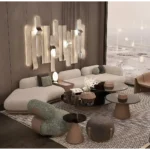 A bold statement piece, the Royal Azure features a sweeping curved chaise and vibrant blue velvet. The slim metal legs provide a light, airy feel, making it a perfect centerpiece for a sophisticated parlor.