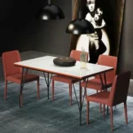 A masterpiece of luxury, this Deco white dining set showcases exquisite craftsmanship with turned legs and orte chair back details. The large table is designed to host grand family gatherings in style.