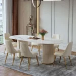 Azure Turkish Marble Oval Table with Gold Accents