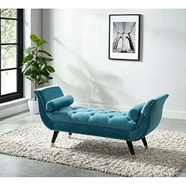 Serene Azure Tufted Velvet Bench with ilhead Trim