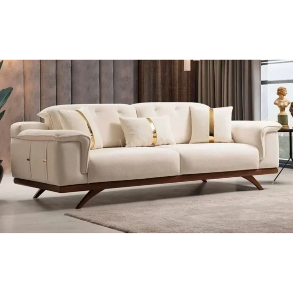 Serene Horizon Turkish Cream Sofa with Walnut Base