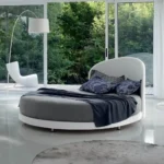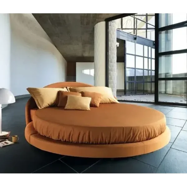 Bring warmth to your space with this vibrant ochre round bed. The simple, continuous curve of the headboard flows into the circular base, all wrapped in a rich velvet that makes a bold, stylish statement.