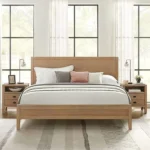 Sophisticated Light Brown Solid Wood Minimalist King Size Bed