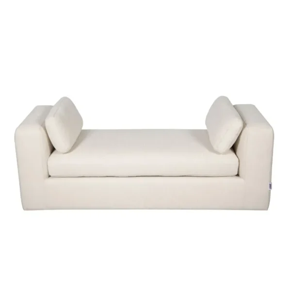 The Symmetrical Bolster Cushions Minimalist White Leather Rite Settee is designed to bring a touch of class to any home. Wrapped in high-quality leather rite fabric, it features a low-profile silhouette and two plush bolster pillows for a symmetrical, architectural look that fits perfectly in hallways or at the foot of a bed.. This sophisticated white settee offers a seamless blend of modern minimalism and everyday comfort Built with quality materials to ensure lasting durability and style.