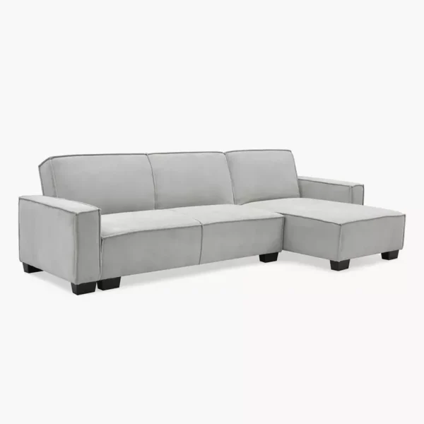Trendy L-Shaped Grey Fabric Sectiol Sofa with Black Legs
