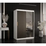 This striking Turkish cupboard stands out with its bold forest green hue and asymmetrical gold striping. Designed for the modern bedroom, it offers a blend of hanging space and exterl drawers for organized, stylish storage.