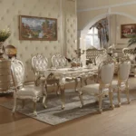 Perfect for modern apartments, this set features a stunning black marble-effect table. The combition of vy blue velvet chairs and a matching dining bench offers a versatile, contemporary look that maximizes seating in a compact footprint.