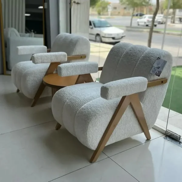 - Tactile white bouclé upholstery