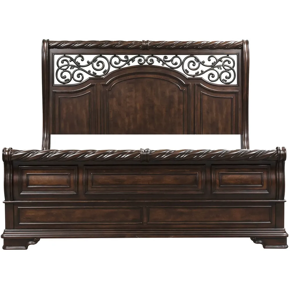Grand Luxury Dark Brown Carved Sleigh Bed Set
