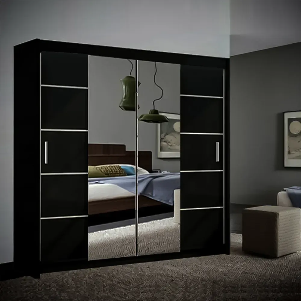 Sleek Black Deco Modern Bed Set with Silver Chrome Geometric Accents