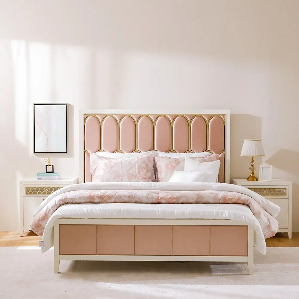 Empress Pink & White Arched Velvet Upholstered Bed – Turkish Style