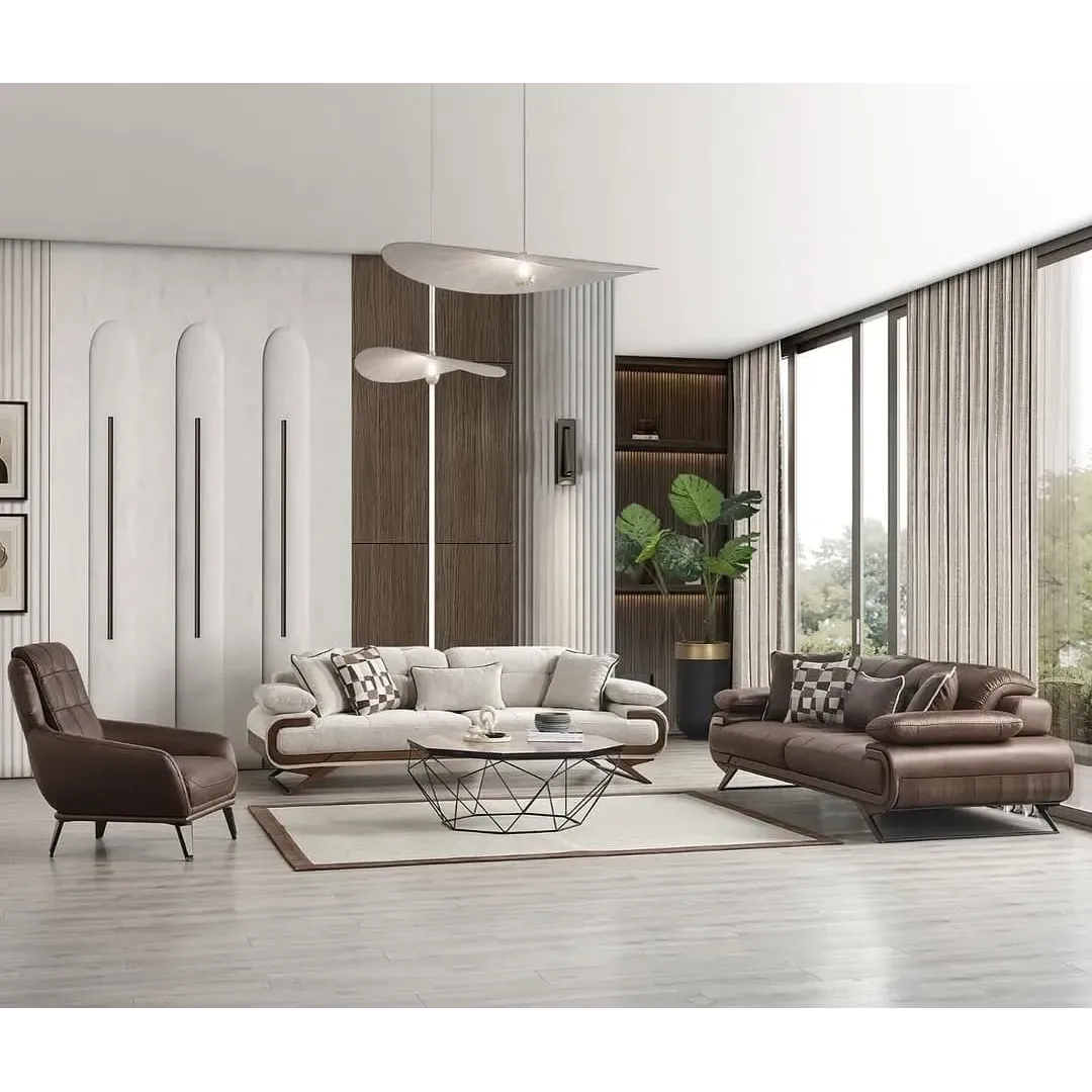 Serene Horizon Turkish Cream Sofa with Walnut Base