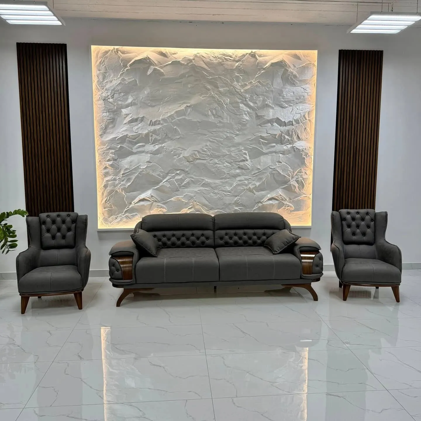 Obsidian Crest Tufted Turkish Black Sofa