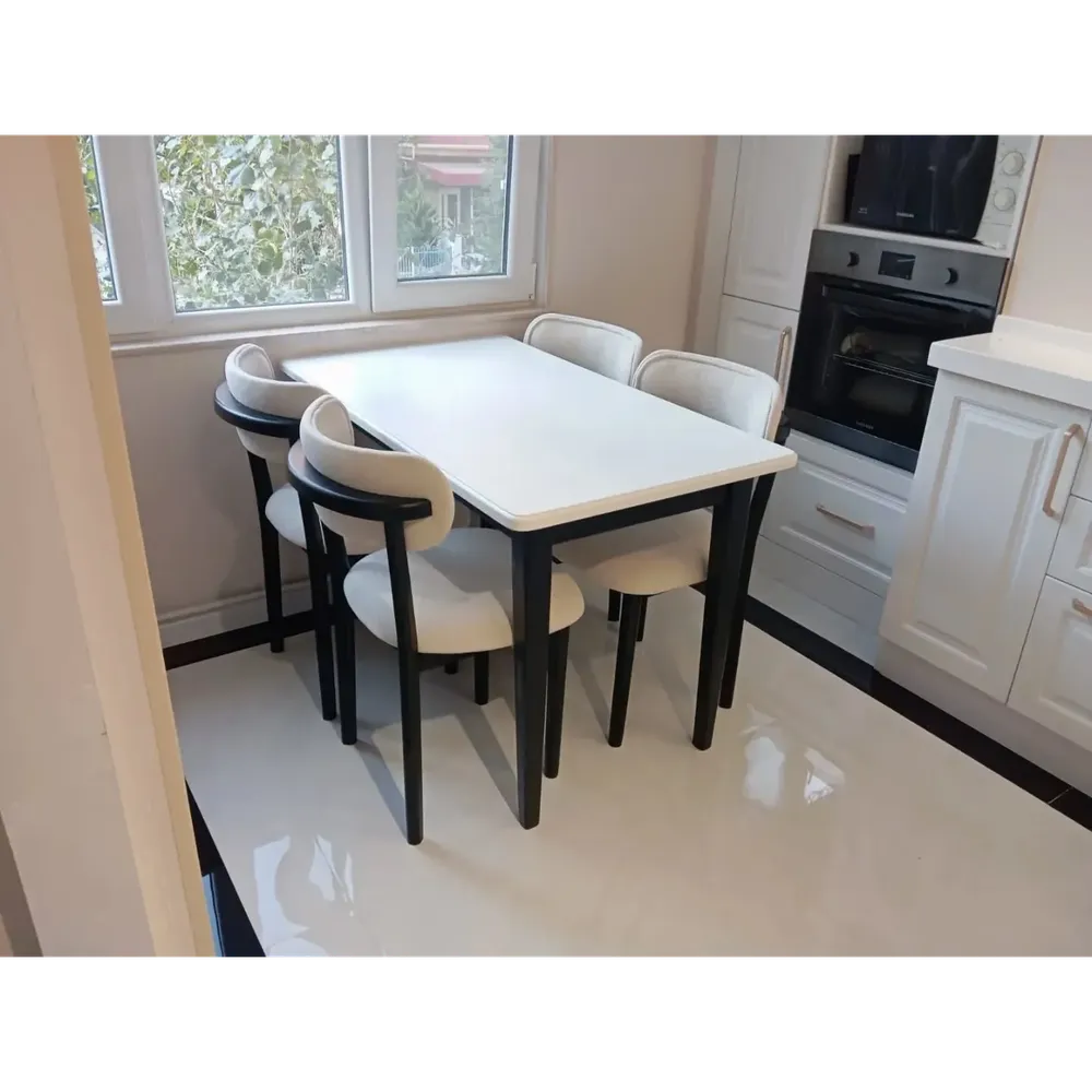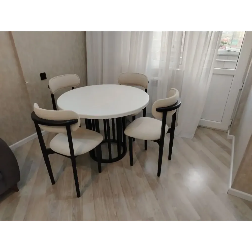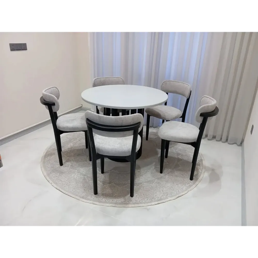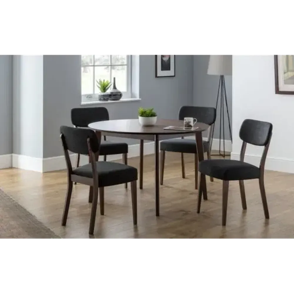 Mid-Century Espresso Round Dining Set with Black Velvet
