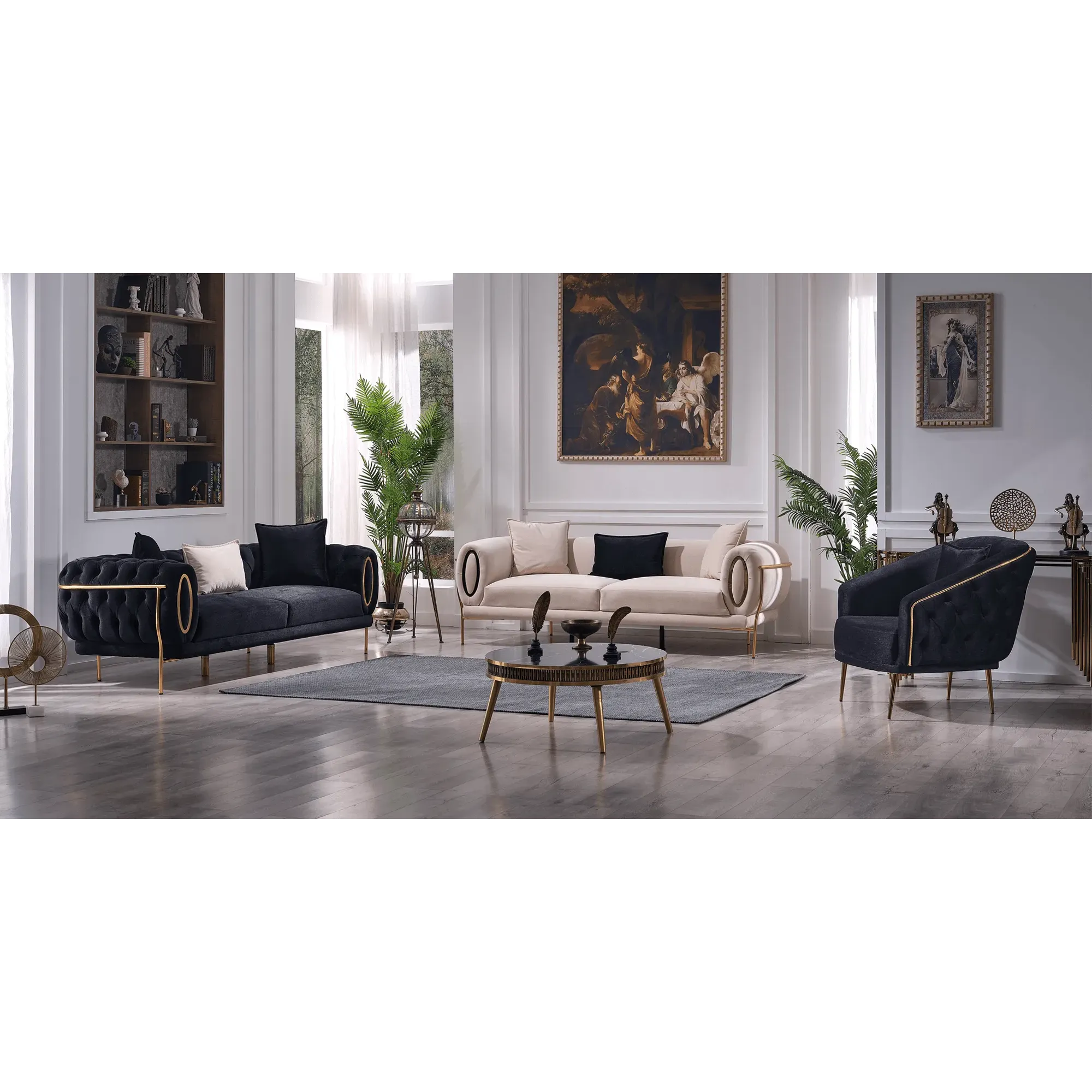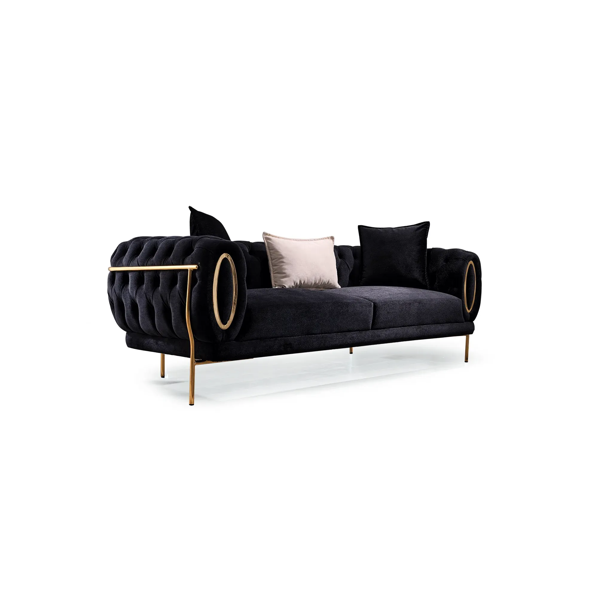 Midnight Velvet Turkish Grandeur Sofa with Gold Detailing
