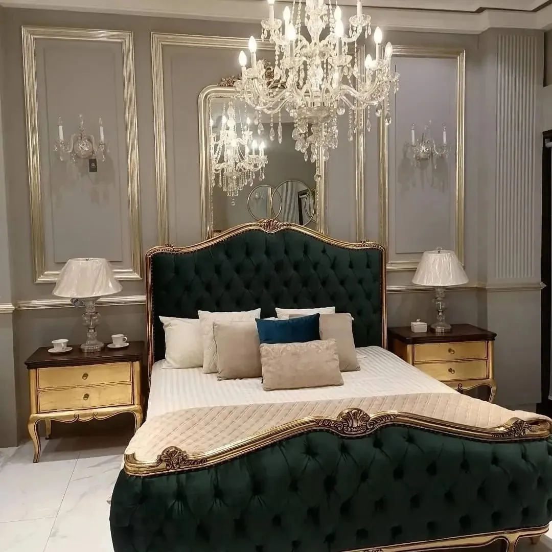 Emerald Velvet Royale Polish Bed with Gold Leaf Detailing