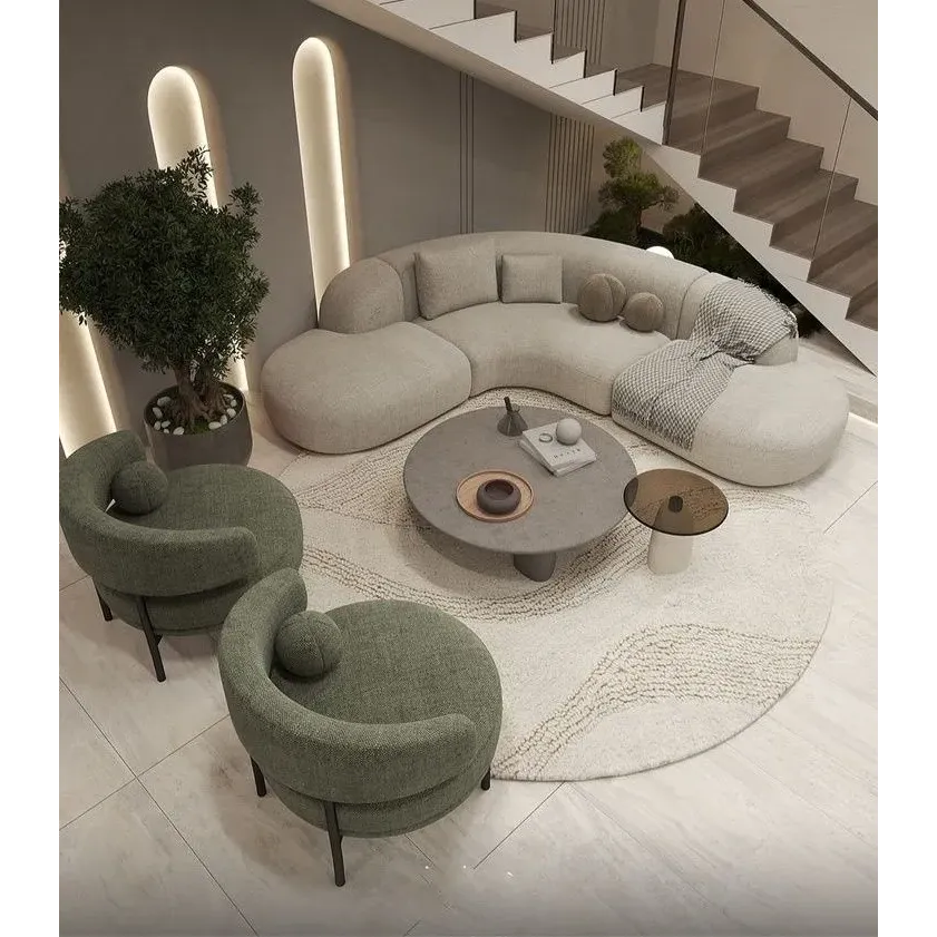 Serene Curve Organic White Boucle Sofa Set