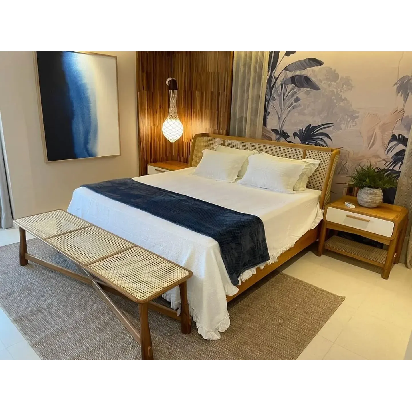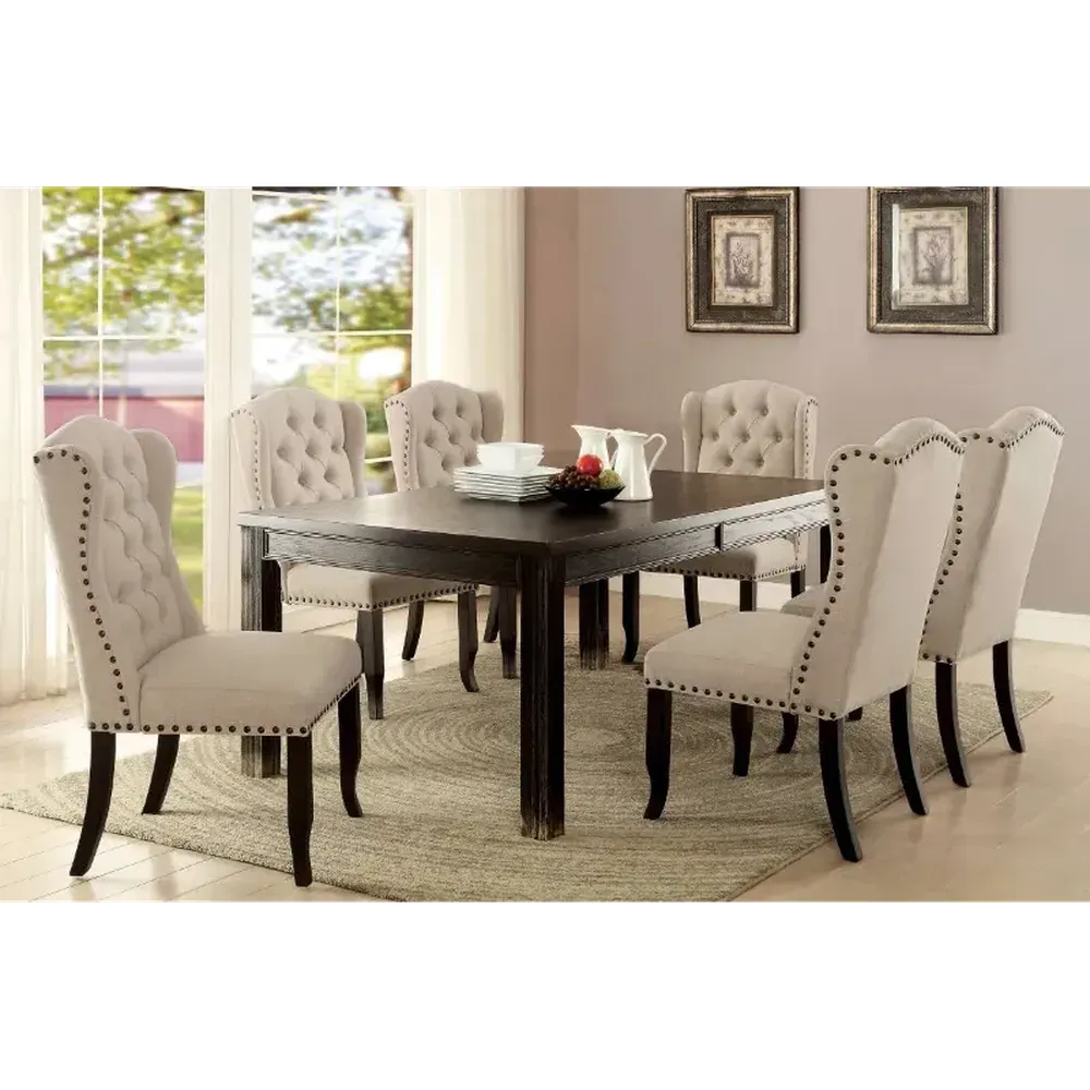 Valerius Classic Beige Leather Rite Bed with Tufted Headboard