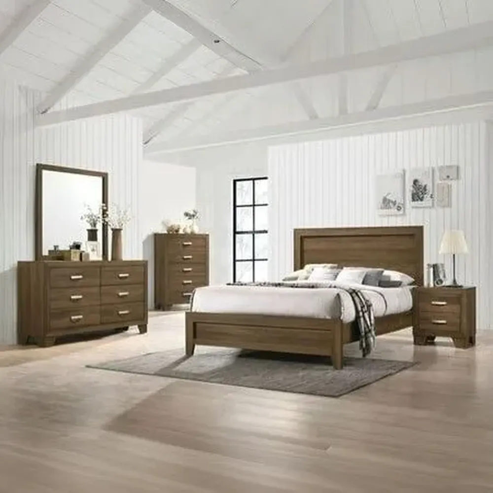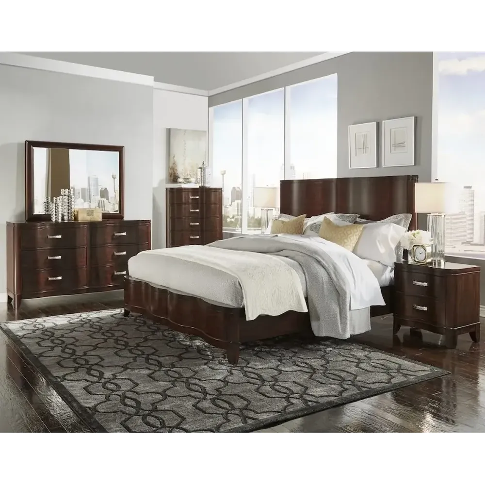 Tiered Headboard Classic Dark Brown Solid Wood Bed