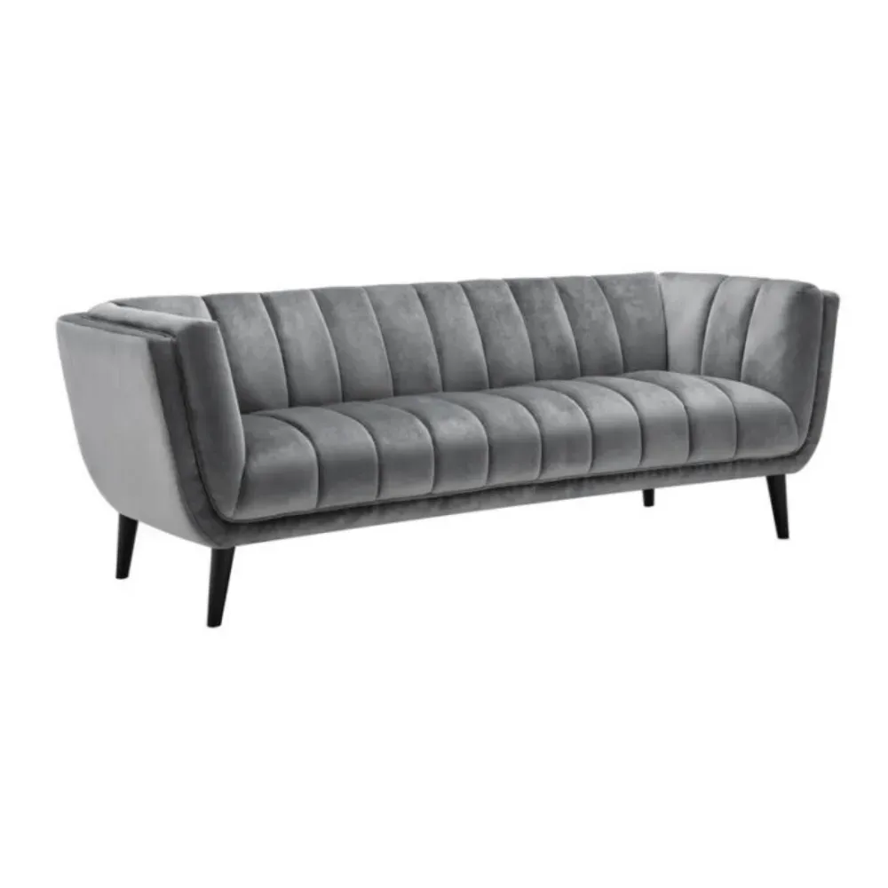 Contemporary Grey Fabric Bed with Integrated LED Lighting & Shelving