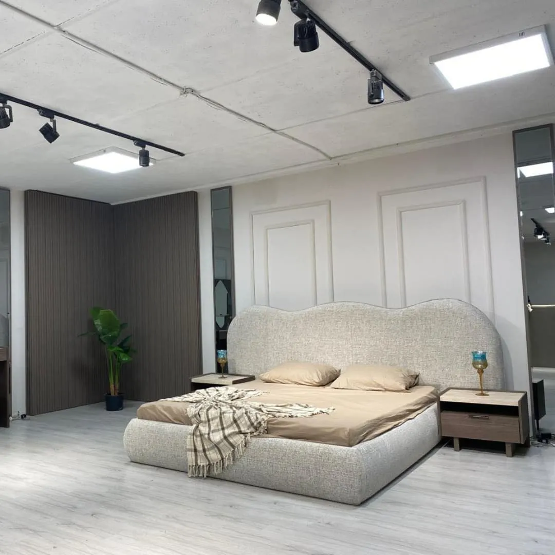 Minimalist Lamited Cream and Wood Grain Bedroom Suite with Textured Decor