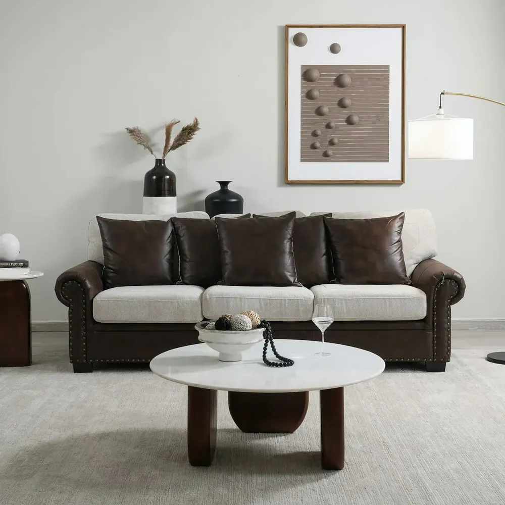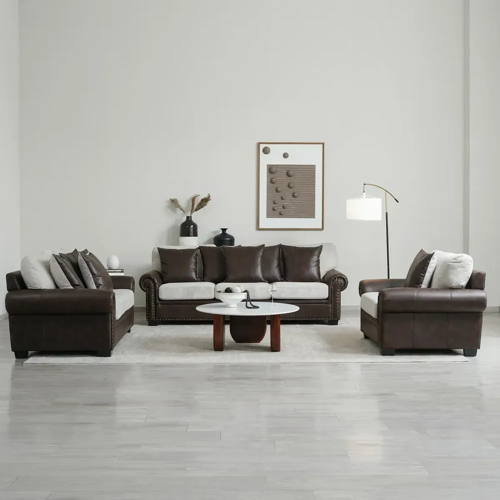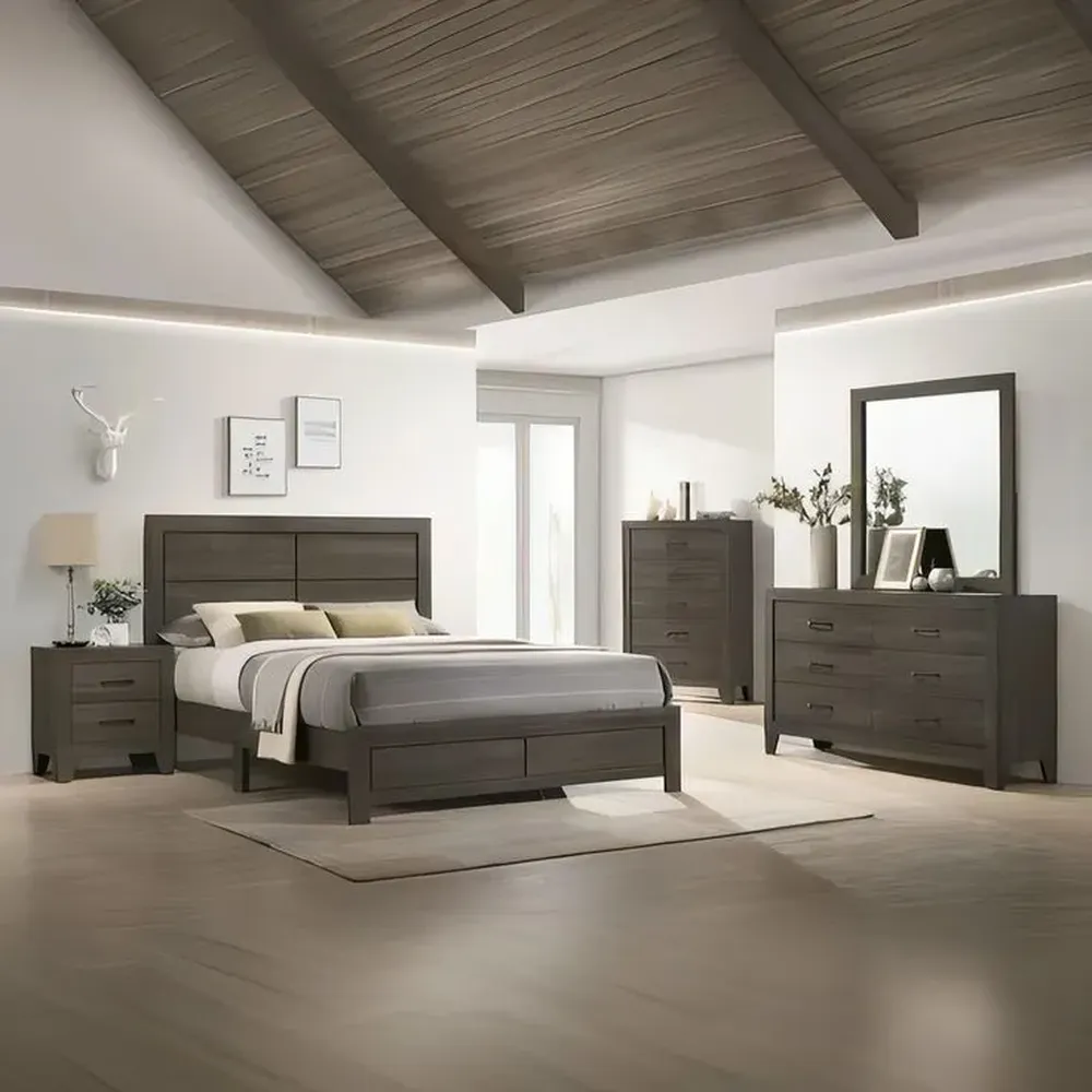 Classic Dark Brown Polish Bed Set with Black Leather Rite Paneling