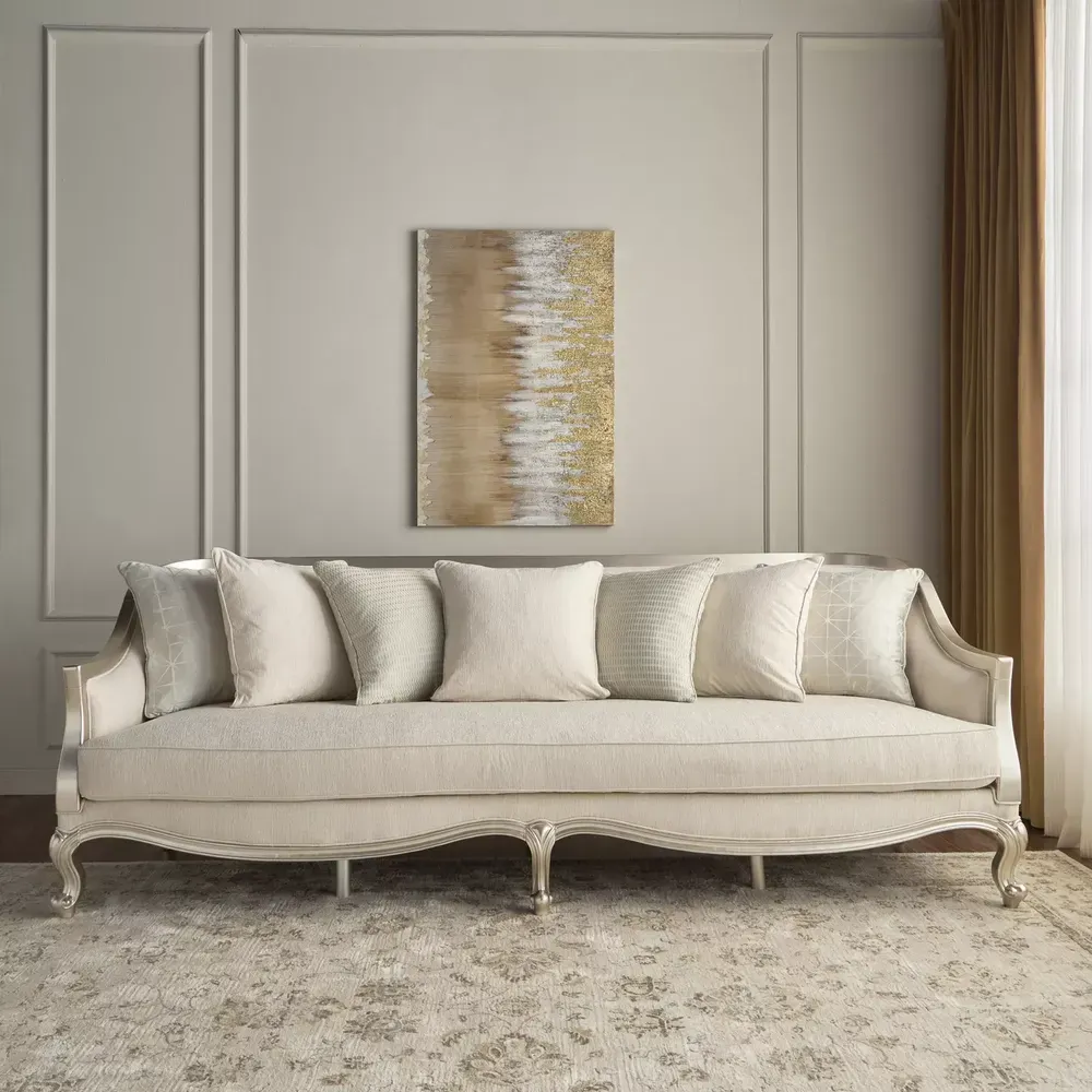 Serene Beige Velvet Bench Dining Set with Silver X-Base