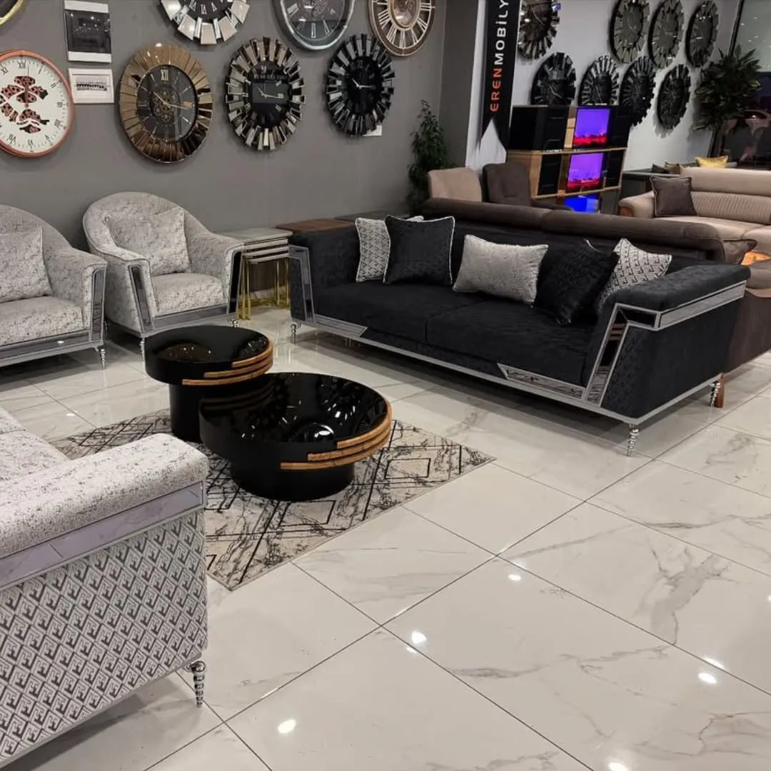 Sleek Black Deco Modern Bed Set with Silver Chrome Geometric Accents