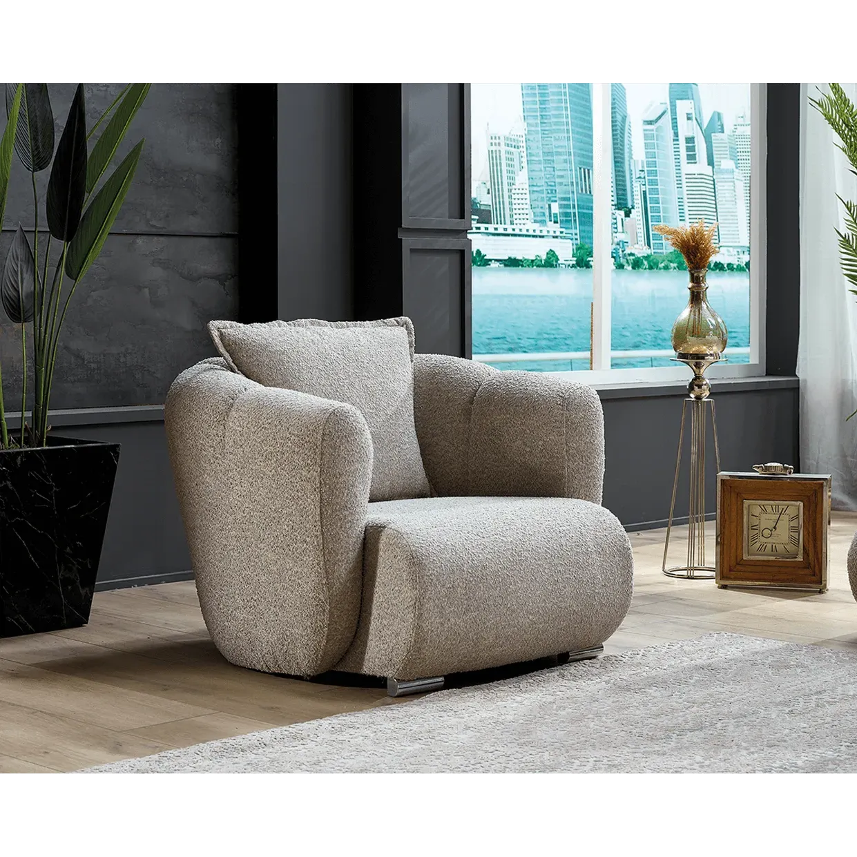 Premium Curved Back Trendy Velvet seat in Warm Brown