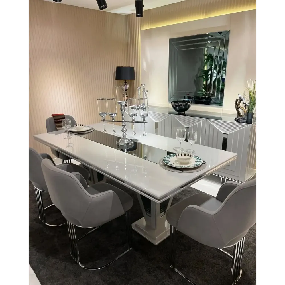Regent Grey Tufted Fabric Dining Table with Marble Top